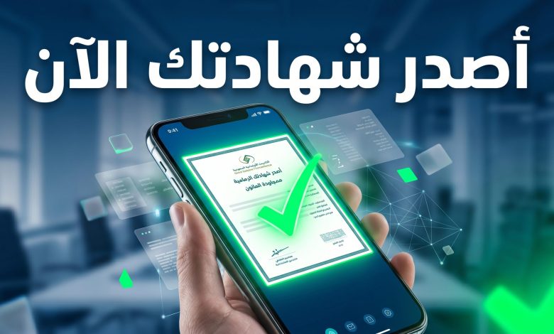 - يمكنك الآن حفظ الشهادة في هاتفك أو مشاركتها مباشرة عبر تطبيقات المراسلة (مثل واتساب أو الإيميل).